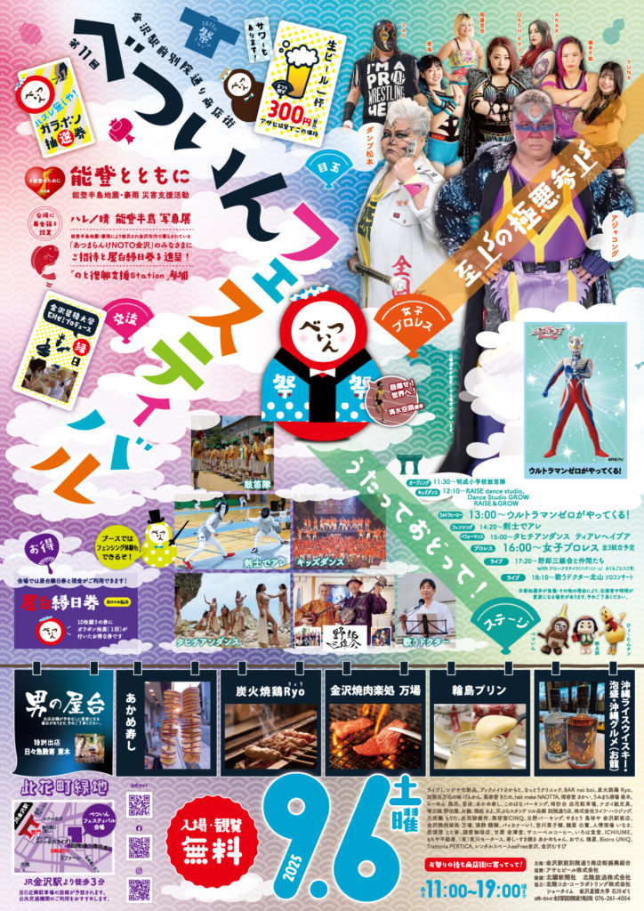 9/6(土)11:00〜19:00に、金沢駅から徒歩5分の此花町緑地にて行われる「第11回べついんフェスティバル」に剣士でアレが参加いたします!